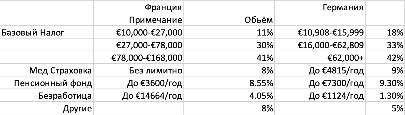 Для сравнения, я попытался сделать таблицу по которой приблизительно можно понять, где налоги больше:
